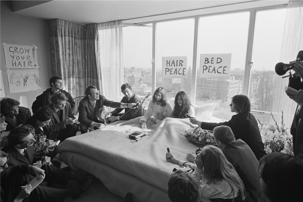 约翰列侬与妻子小野洋子发起的“床上和平运动”。