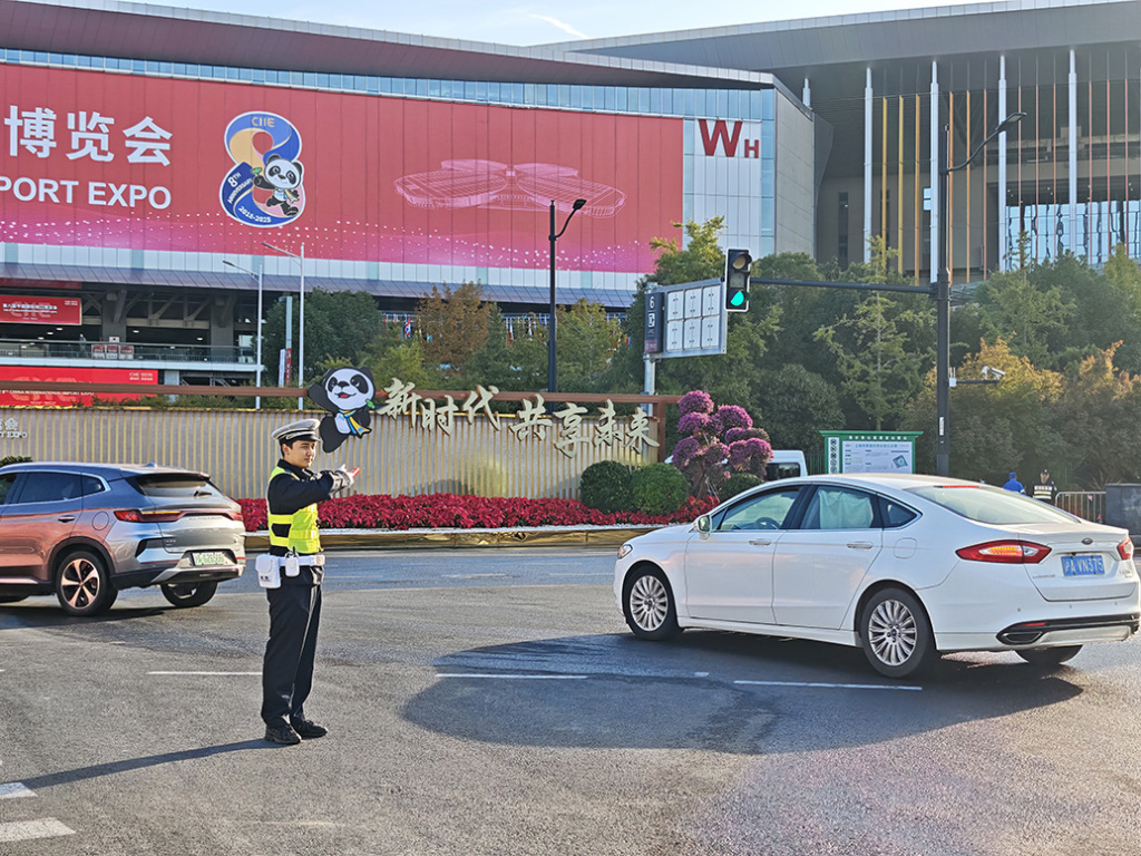 民警在国家会展中心周边道路指挥引导 上海市公安局供图