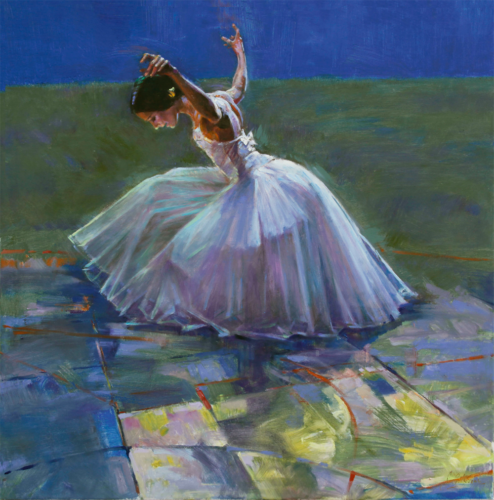 此外,甘锦奇还是位文学爱好者,尤爱莎士比亚作品。“从画家视角看,莎士比亚作品难直接转化为绘画,但改编成顶级芭蕾后,便成了绝佳素材。”他以抽象手法、鲜艳色彩,展现芭蕾舞蹈动作的动态变化,形成独特的芭蕾主题系列作品。