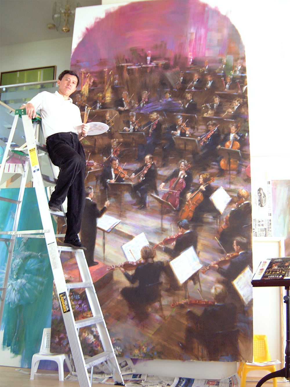 从威尼斯画派到19世纪,画家们尝试以色彩和光影表达旋律。到了现代,一位上海画家走出一条属于自己的“以绘画展现音乐”的成功道路,他就是甘锦奇。