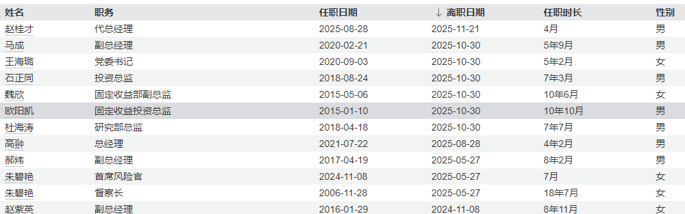 同时wind信息显示,从5月至11月,公司包括总经理、副总经理、投资总监、固定收益总监及督察长在内的多个关键职位相继更替,总经理、副总经理上任,或标志着这家银行系基金巨头进入了全新发展阶段。
