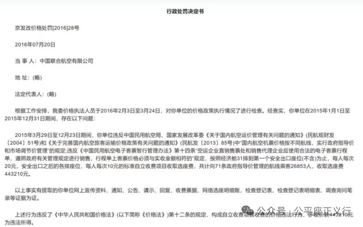 “如果恶意标价,将会受到价格法规制。”上海德禾翰通(昆明)律师事务所吕璐向界面记者表示, 2016年曾发生中国联合航空有限公司加收“安全出口座位费”一案,最终收到行政处罚。《价格法》十四条规定,不得有不正当价格行为,如果航司有如虚构原价、捆绑销售等操作,将违反《价格法》。
