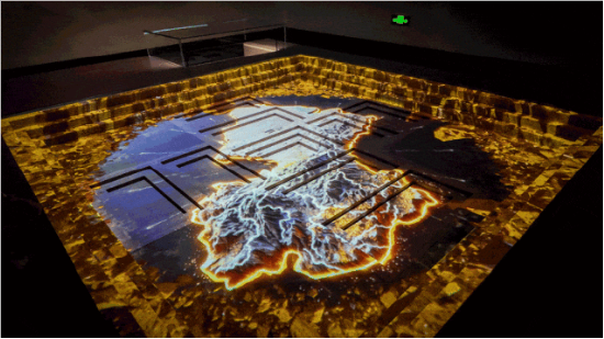 文物静默不语,光影助力其“发声”。为让观众挣脱时空桎梏,直观触摸楚墓的神秘与厚重,7台光峰D Pro工程投影,以三折幕与数字沙盘两种投影技术手段,打造出沉浸式文化体验空间。